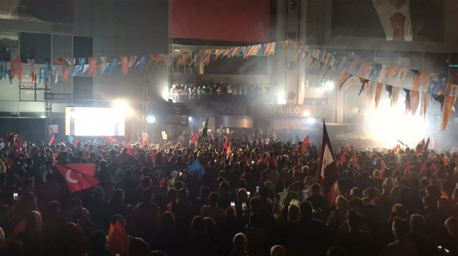 İzmir'de AK Parti İl Başkanlığı binası önünde toplanan vatandaşlar, Cumhurbaşkanı Recep Tayyip Erdoğan'ın seçim başarısını kutladı.