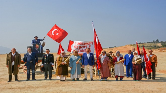 Hüsnü Kazım Özler tarafından 1933 yılında Uşak’ta çekilen tarihi fotoğrafın canlandırılarak hazırlandığı filmde, dönemin kıyafetlerinden kağnıya, aksesuarlarından pankarttaki yazıya kadar tüm detaylar bire bir işlendi. Çekimleri İzmir'in Kemalpaşa ilçesinde yapılan filmin setine AK Parti İzmir İl Başkanı Aydın Şengül de konuk oldu. Filmde gönüllü olarak yer alan oyuncularla sohbet eden Şengül, duygusal anlar da yaşadı.