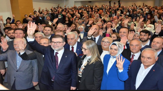 AK Parti İzmir’in yeni başkanı Bilal Saygılı ve eski Başkan Kerem Ali Sürekli’nin kürsüde birlikte oturduğu törende ilk sözü Sürekli aldı.
