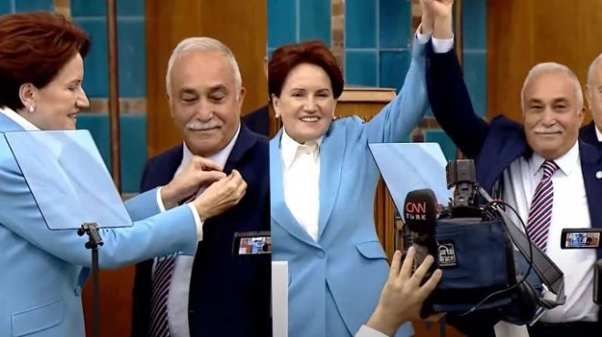 Fakıbaba'ya İYİ Parti rozetini kürsüde Meral Akşener taktı.