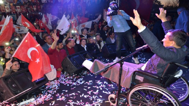 ALÇILI AYAĞIYLA MİTİNG YAPTI