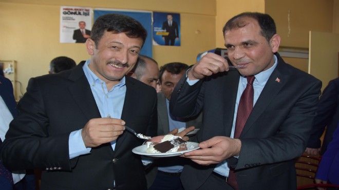 Seçim ofisinin açılışının ardından Hamza Dağ, 42’nci yaş günü olan Durmaz Bayraktar’ı kutladı. Bayraktar, kendisi için hazırlanan yaş günü pastasını kesti. (DHA)
