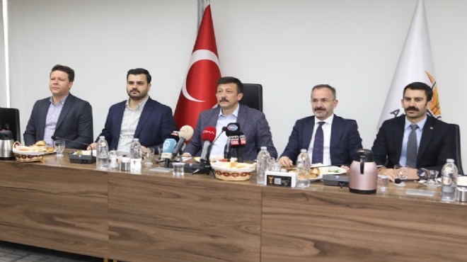 Efe Can TAN/GERÇEKİZMİR - AK Parti Genel Başkan Yardımcısı ve İzmir Milletvekili Hamza Dağ ve AK Parti Gençlik Kolları Genel Başkanı ve İzmir Milletvekili Adayı Eyyüp Kadir İnan partilerinin il binasında basın mensupları ile bir araya geldi.