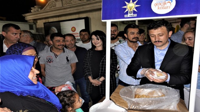 AK Parti Genel Başkan Yardımcısı Hamza Dağ, Menemen ilçesinde katıldığı sahur programında vatandaşlara İzmir'in simge yiyeceklerinden boyoz dağıttı.