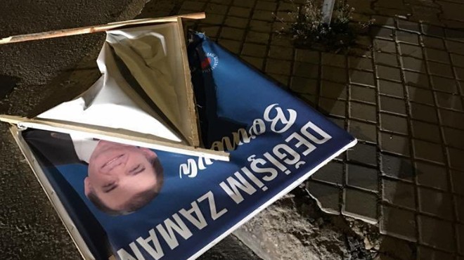 İzmir'in Bornova ilçesinde AK Parti Belediye Başkan Adayı Reşat Gençtürk'ün fotoğrafları ile parti ambleminin bulunduğu çok sayıda afişe zarar verildi.