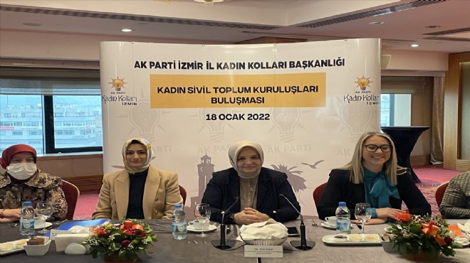 Bir otelde düzenlenen İzmir Kadın Sivil Toplum Kuruluşları Buluşması'na, AK Parti Genel Merkez Kadın Kolları Başkanı Ayşe Keşir, Genel Merkez Kadın Kolları Teşkilat Başkanı Emine Yavuz Gözgeç, İzmir Milletvekili Ceyda Bölünmez Çankırı, Denizli Milletvekili Nilgün Ök ve sivil toplum kuruluşlarının temsilcileri katıldı.