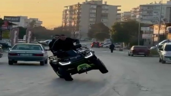 Sanal medyada bir ATV sürücüsünün arka koltukta bir kişi daha olduğu halde drift attığı anların cep telefonu kamera görüntülerinin paylaşılması üzerine, Trafik Denetleme Şube Müdürlüğü sivil ekiplerince çalışma başlatıldı. Yapılan çalışmalar kapsamında, hem kendi hem de yolcunun hayatını tehlikeye atan 35 ARD 440 plakalı ATV’nin sürücüsünün Y.O. (34) olduğu ve Bornova ilçesi 4. Sanayi 129/13 Sokak üzerinde eylemi gerçekleştirdiği belirlendi.