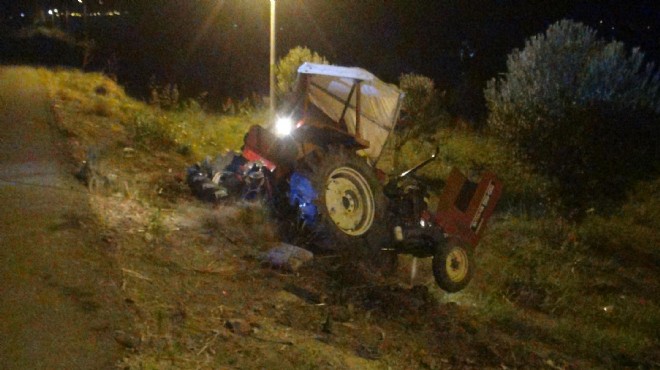 Kaza, dün saat 23.30 sıralarında, Kınık-Soma karayolu Kınık kavşağı yakınlarında meydana geldi. Taştepe Mahallesi'nde yaşayan evli ve 3 çocuk babası Sadi Kılınç, gün içerisinde evden çıkan bir daha dönmeyen kızları için jandarmaya giderek kayıp başvurusunda bulundu. Eşi Handan Kılınç ile eve dönmek için yola çıkan Sadi Kılınç yönetimindeki 35 UBK 84 plakalı traktöre, Hayrettin Kayalı (52) yönetimindeki 35 AK 0477 plakalı otomobil arkadan çarptı. Traktör yolun sağında bulunan tarlaya uçtu. Kazada, her iki sürücü ile Kılınç'ın eşi Handan Kılınç yaralandı. Yaralılar, diğer sürücülerin ihbarı üzerine olay yerine sevk edilen ambulanslarla Bergama Necla Mithat Öztüre Devlet Hastanesi'ne kaldırdı. Yaralıların sağlık durumlarının iyi olduğu belirtilirken, 1,95 promil alkollü olduğu belirtilen otomobil sürücüsü Hayrettin Kayalı, tedavisinin ardından jandarma tarafından gözaltına alındı. (DHA)