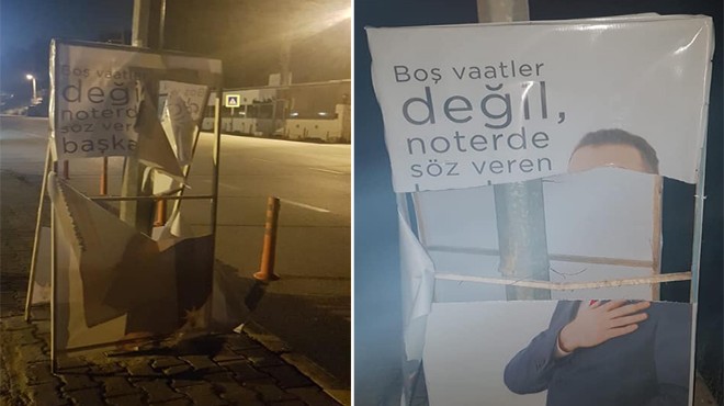 Buca'da Cumhur İttifakı Ak Parti Buca Belediye Başkan Adayı Mustafa Arslan'ın afişlerine yönelik yoğun bir saldırı başladı. Vatandaşın ihbarı üzerine polis, afişleri yırtan 3 kişiyi yakaladı. Yakalananların belediye çalışanı çıkması üzerine Başkan Adayı Arslan, 'İşlerinden olmasınlar' diyerek şikayetçi olmadı.