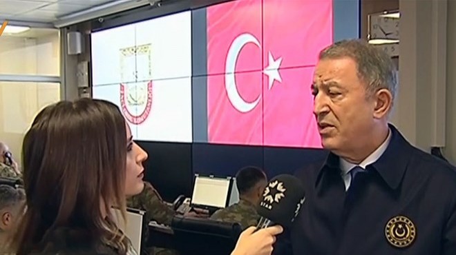 Milli Savunma Bakanı Hulusi Akar komutanlarla Suriye sınırında askerlerin yeni yılını kutladı.