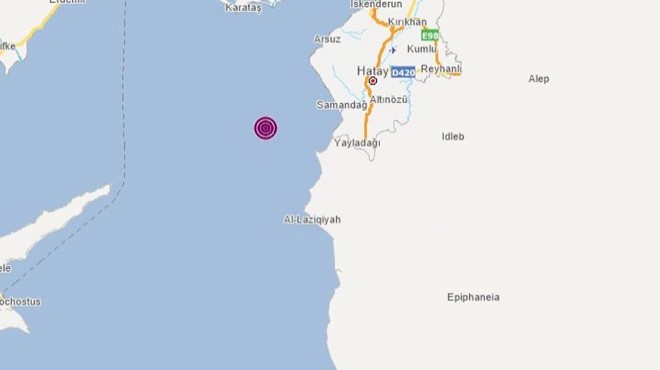 Akdeniz'de, Hatay'ın Yayladağı ilçesi açıklarında 4,7 büyüklüğünde deprem meydana geldi.