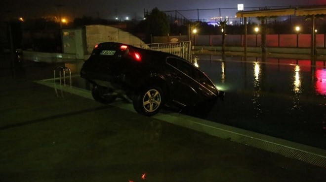 Otomobili yarıya kadar suya gömülen Özkan, aracın arka kapısından dışarı çıktı.