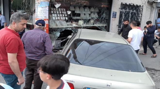 Alınan bilgiyi göre, Sırrı Atalay Caddesi'nde sürücüsünün kimliği henüz belirlenemeyen 45 DC 550 plakalı araç, kontrolden çıkarak yol kenarındaki kuyumcu dükkanının vitrine çarptı.