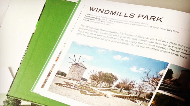 Bir mimarlık ofisinde, yüksek mimarlar Ali Kural ve Deniz Çalış tarafından tasarlanan ve dönemin Alaçatı Belediyesi tarafından yaptırılan Alaçatı Yeldeğirmenleri Parkı 2016 yılında Centre of Contemporary Culture of Barcelona (CCBC) tarafından düzenlenen 'European Prize for Urban Public Spaceö - Avrupalı Kentsel Kamusal Mekan' sergisine kabul edilmişti. İki yılda bir düzenlenen bu seçkide 2016 senesinde 33 Avrupa ülkesinden 274 projenin katıldığı bir sergi, düzenlenmiş ve uygulaması gerçekleşmiş, kent içinde eskiden atıl olan ve bir kentsel tasarım projesi ile kamuya kazandırılan kentsel açık alan projeleri sergilenmişti. Bu seçkiye katılacak projelerde, tasarlanan kentsel açık alanların kentin sosyal yapısını geliştiren, kamusal bilinci güçlendiren nitelikte olması şartı aranıyor. (DHA)