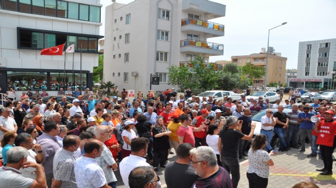 100 kadrolu belediye işçisinin tek taraflı iş akitlerinin feshedilmesinin ardından DİSK Genel-İş İzmir 5 Nolu Şube yönetimi belediye önünde geniş katılımlı bir basın açıklaması gerçekleştirdi. Basın açıklamasına Aliağa Emek ve Demokrasi Bileşenleri, CHP Aliağa İlçe Başkanı Gülsen Cirit ve yönetimi, DİSK Genel İş 5 Nolu Şube'ye bağlı Karşıyaka, Karabağlar, Buca, Konak, Çiğli, Dikili ve Aliağa Belediyelerinin Şube temsilcileri, Aliağa’da ki sivil toplum kuruluşları ve siyasi parti temsilcileri katılım gösterdi.Aliağa Belediyesi önünde yapılan basın açıklamasında konuşan Disk Genel İş İzmir 5 No’lu Şube Başkanı Ali Haydar Kara, Aliağa’lıları bu günden itibaren işe geri dönmek talebinde bulanan işçilerle dayanışmaya çağırarak “Tüm demokratik kitle örgütlerini, kurum ve kuruluşları ve Aliağa halkını atılan arkadaşlarımızın işlerine geri dönmek için başlattıkları mücadeleye destek vermeye çağırıyoruz.” şeklinde konuştu. Daha sonra sloganlar eşliğinde basın açıklamasını okumaz üzere megafonu eline alan Genel-İş Aliağa Belediyesi işyeri temsilcisi Doğanşah Aydın, “Bu kentin parklarını yaşanılabilir kılan, her caddesini büyük bir özenle kendi eviymiş gibi temizleyen, yollarını yapan,hizmet binalarında halkın sorunlarını dinleyip çözüm üreten 100 arkadaşımız adeta kullanım tarihi geçmiş bir meta gibi kapının önüne konmuştur. İnsan onuru ve haysiyetine yaraşmayan zamanlardan geçiyorduk, ama böylesine ilk kez tanık olmak kahrımızı ve öfkemizi daha da derinleştirdi. Bizler bundan 1 ay önce işten atılan 22 çalışma arkadaşımızın işe dönüşleri için mücadele verirken,işveren her türlü toplu sözleşme ve sendikalı çalışma koşullarını ortadan kaldıran ve kölelik düzeni yaratmak amacına yönelik bir tutumla emekçi sınıfına saldırmayı tercih etmiştir.” İfadelerini kullandı.