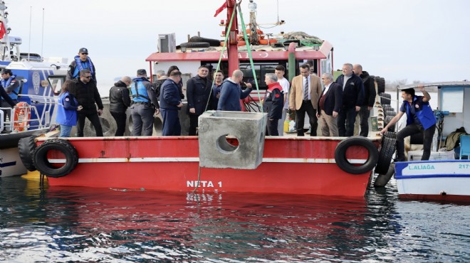 Tarım ve Orman Bakanlığı'nın onayı ile Aliağa Belediyesi ve Aliağa İlçe Tarım ve Orman iş birliğinde gerçekleştirilen proje kapsamında ilk yapay resifler denizle buluşturuldu. Projede toplam 600 adet yapay resif deniz altına indirilecek. Deniz canlılarının barınmasına, beslenmesine ve çeşitliliğin artırılmasına katkı sağlayacak olan resifler, Aliağa Kaymakamı Zekeriya Güney, Aliağa Belediye Başkanı Serkan Acar, Garnizon Komutanı Albay Faruk Altun, İzmir İl Tarım ve Orman Müdürü Mustafa Şahin, Aliağa İlçe Tarım ve Orman Müdürü Mazlum Selim Aksakal, İMEAK DTO Aliağa Şube Yönetim Kurulu Başkanı Adem Şimşek, Aliağa Amatör Balıkçılar ve Deniz Sporları Derneği (ALDER) Başkanı Naci Biçer ve Aliağa Su Ürünleri Kooperatifi Başkanı Hakan Şengül'ün katılımlarıyla Aliağa körfezinde kıyıya yaklaşık 400 metre açıkta suya indirildi.