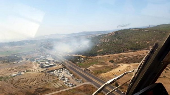 İzmir'in Aliağa ilçesindeki ormanlık alanda çıkan yangın, havadan ve karadan müdahaleyle, büyümeden söndürüldü. (DHA)