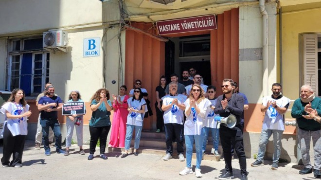 İdarecilerin baskılarla, tehditlerle ve vaatler yoluyla çalışanları yandaş sendikaya üye yaptıklarının ifade edildiği basın açıklamasını okuyan SES İzmir 2 No’lu Şube Sekreteri Fatih Özbilgi, “Tüm hastane bu durumdan haberdardır. Sendika seçmek anayasal haktır. Bu idareciler kendi koltuk sevdalarına görevlerini kötüye kullanarak alenen sendikal bir çalışma yürütmektedirler” diye konuştu.