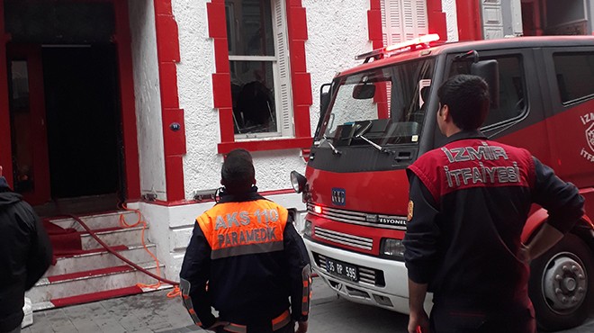 İZMİR - Alsancak'ın Gazi Kadınlar Sokağı'nda bulunan bir barda henüz bilinmeyen nedenle yangın çıktı. İki katlı binadan yükselen alevleri gören çevredekiler durumu itfaiye ekiplerine bildirdi.