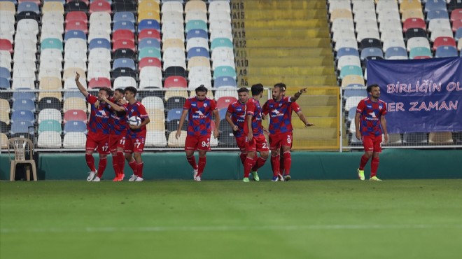 2’nci dakikada Altınordu öne geçti. Sağdan Recep’in pasında ceza sahası sol çaprazda topla buluşan Ali Dere, yerden bir vuruşla meşin yuvarlağı yakın direğin dibinden ağlara yolladı: 1-0.