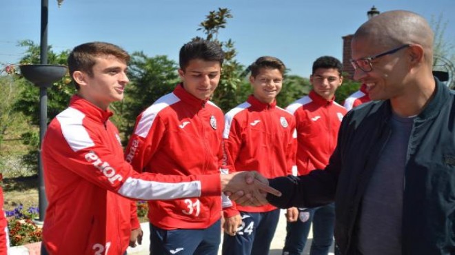 Başkan Seyit Mehmet Özkan, "Alex futbolculuğu, aile yapısı ve kişiliğiyle tam bir örnek. Gençlerimizin Alex'i tanımasını kariyer planlarını onun gibi yapmasını arzu ediyorum" dedi. (DHA)
