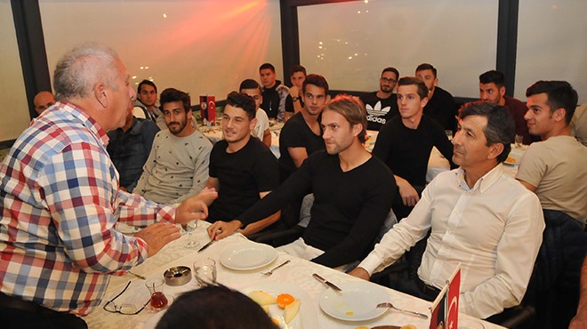 İZMİR - Milli maç nedeniyle lige verilen arada toparlanmayı hedefleyen kırmızı-lacivertli ekip dün Forum Bornova'da yapılan gezinin ardından Kordon'daki bir restoranda akşam yemeği yedi. Teknik direktör Hüseyin Eroğlu'nun da katıldığı gecede neşeli tavırlarıyla dikkat çeken Başkan Özkan, "Moralinizi bozmayın, yeniden çıkışa geçeceğinize inanıyorum" diyerek futbolculara moral verdi.