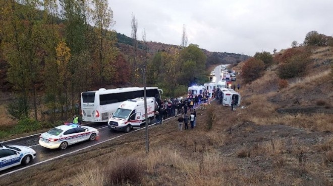 İtfaiye ve sağlık ekiplerince otobüsten çıkarılan 27 yaralı, ambulanslarla çevredeki hastanelere kaldırıldı.