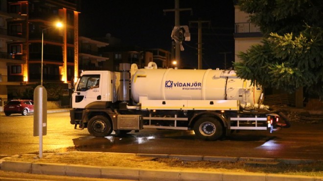 Bölgeye gelen İzmir Su ve Kanalizasyon İdaresi (İZSU) ekipleri suyu keserek onarıma başladı.
