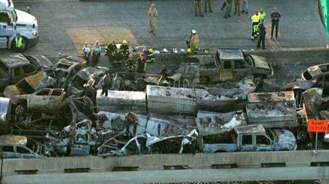 New Orleans'da yer alan bir otoyolda görüş mesafesi sıfıra yaklaştı. Yüksek hızda seyreden araçlar köprü üzerinde birbirine girdi.