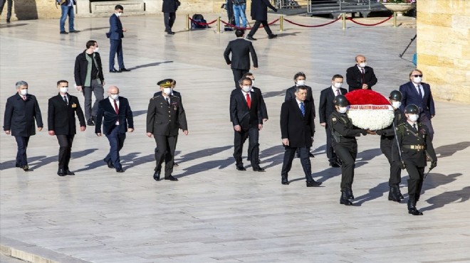 Bakan Selçuk ve beraberindekiler, kırmızı-beyaz karanfillerden oluşan çelengin arkasında Aslanlı Yol'dan yürüyerek Atatürk'ün mozolesine geldi.
