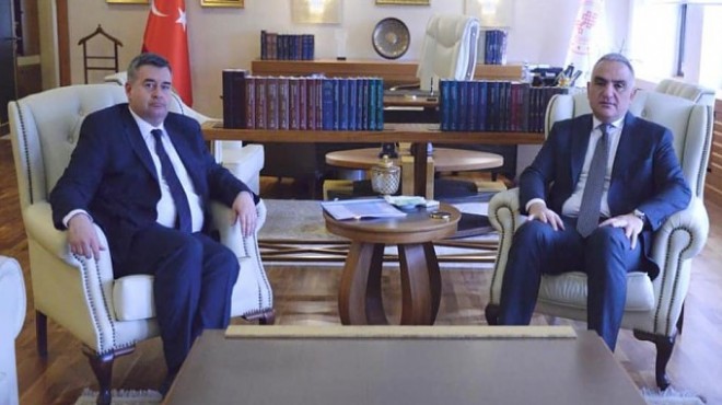 Kültür ve Turizm Bakanlığı Yatırım İşletmeler Genel Müdürlüğü tarafından Çeşme ve Urla’da kamulaştırılan alanlar üzerinde yapılması planlanan “Ege Turizm Merkezi-Çeşme Projesi”nin ayrıntıları ortaya çıkarken, Çeşme Belediye Başkanı CHP’li Ekrem Oran, Bakan Ersoy’u ziyaret etti.