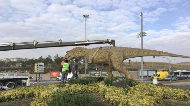 Melih Gökçek döneminde Ankapark'ın tanıtımı için konulan ve uzun süre tartışma konusu olan dinozor maketi, bu sabah saatlerinde büyükşehir belediye ekiplerince söküldü.