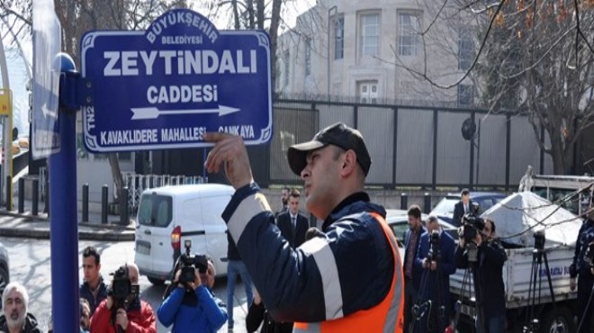Ankara Büyükşehir Belediyesi ekiplerince, Amerika Birleşik Devletleri'nin (ABD) Ankara Büyükelçiliğinin önündeki caddenin "Zeytin Dalı" olarak değiştirilen ismine ait tabela asıldı.