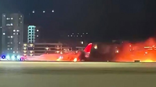 Hızla yönlendirilen ekipler yangına müdahale ederken, uçaktaki 79 yolcu tahliye edildi.