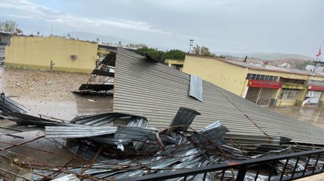 Kuvvetli rüzgar nedeniyle ilçedeki Yeni Camisi'nin minaresi yıkıldı, evlerin çatıları uçtu, araçlarda hasar oluştu.