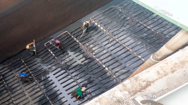 Yürütülen bakım ve temizlik çalışmaları kapsamında tesisin tüm ünitelerinde temizlik çalışması yapılıyor. Tesis bünyesinde bulunan koku kontrol sistemi kapsamında üzerleri kapatılmış olan ünite yüzeylerindeki kompozit kapaklar modüler olarak kaldırılarak havuz içi temizliği gerçekleştiriliyor. İkişer fazdan oluşan havuzların temizliği sırayla yapıldığından atıksu arıtma işlemi temizlik esnasında kesintisiz olarak devam ediyor.