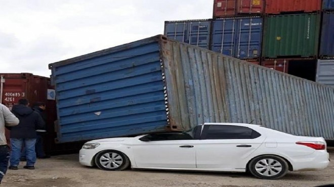 Olay, sabah saatlerinde, Pınarbaşı Mahallesi'nde faaliyet gösteren lojistik firmasına ait depoda meydana geldi. Üst üste istifli olan boş konteynerlerden biri aşırı rüzgara dayanamayıp, aşağıda park halinde olan otomobilin üzerine devrildi. Olayı gören firma çalışanları otomobilin yanına koştu. Hasarın oluştuğu olay, paniğe neden oldu. Konteyner ve otomobil, vinçle olay yerinden kaldırıldı. Öte yandan, kent genelinde sabah saatlerinde başlayan ve öğlen saatlerinde etkili olan sağanak, cadde ve sokaklara su basmasına neden oldu. Konak ilçesine bağlı Alsancak Mahallesi'nde sağanak nedeniyle deniz taştı. Sürücüler ve halk zor anlar yaşadı.