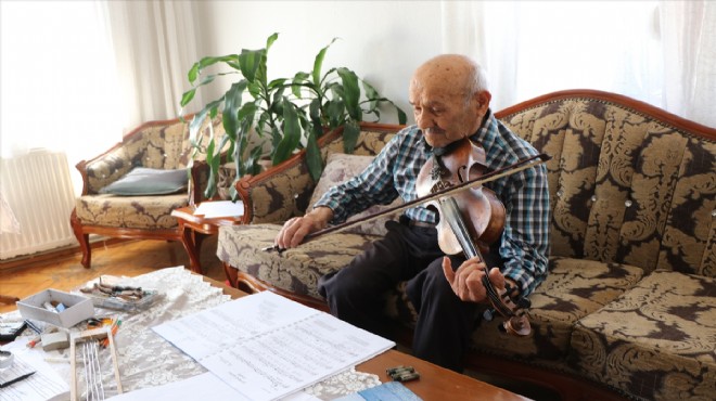 İzmir'in Bergama ilçesinde yaşayan 96 yaşındaki Hüseyin Kocakülah, 35 yıl önce kurulmasına da öncülük ettiği koroda enstrüman çalmaya devam ediyor.