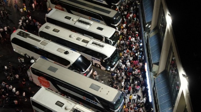 Otogarın içi de dışından farklı değildi. Binlerce kişi sosyal mesafe kuralarını unutarak harekete hazırlanan otobüslerin çevresini doldurdu.