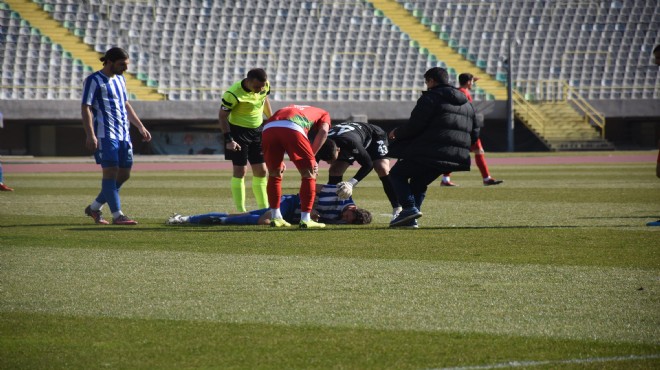Mücadelenin 55’inci dakikasında çenesine darbe alan oyuncu kanlar içinde yerde kaldı. Baygınlık geçiren Recep’e ilk müdahale saha içinde yapılırken, sahaya ambulans girdi. Apar topar hastaneye kaldırılan Recep’in dişlerinin kırıldığı ve çenesinde çıkık olduğu öğrenildi. Ebaasporlu yetkililer, oyuncularının hayati bir tehlikesi olmadığını iletti. (DHA)