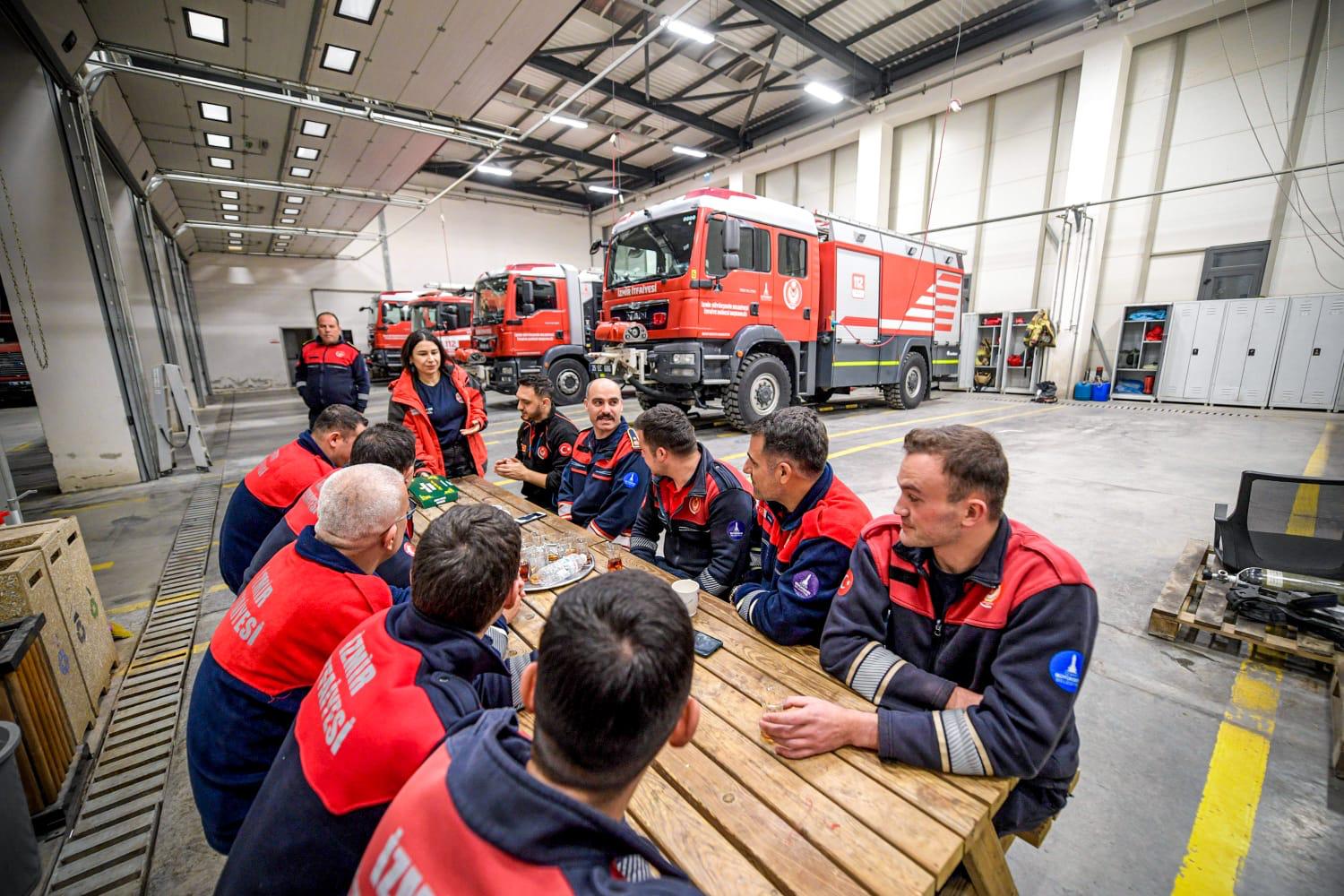 Torbalı Çaybaşı İtfaiye Grubu’nda da itfaiye personeli bereketli ramazan sofralarında bir araya geliyor. Ancak hiçbir özel an onların görevinin önüne geçemiyor. Toplam 280 itfaiye personelinin görev yaptığı birimde ekipler iftar saatinde bile olası bir ihbara karşı tetikte bekliyor. Güney Bölge Amiri Türkay Kaptan İzmir İtfaiyesi’nin 7 gün 24 saat görev başında olduğunu vurgulayarak şunları söyledi: “İzmir Büyükşehir Belediyesi İtfaiye Dairesi Başkanlığı olarak insanların canını ve malını korumak için çalışıyoruz. Ramazan ayında iftar anında bile vaka çıkabiliyor. Böyle anlarda ekiplerimiz bir dakika bile durmadan görevine koşuyor. Döndüklerinde iftarlarına devam ediyorlar. Açlık ya da susuzluk bizim için önemli değil. Önceliğimiz her zaman yurttaşların can güvenliği.”