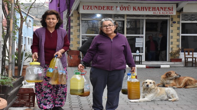 Bölgedeki sokak hayvanlarını besleyebilmek için atık yağ toplamaya başladıklarını anlatan köylülerden Fatma Yılmazer, "Önceden zaten sokak hayvanlarını kendi imkanlarımızla besliyorduk ancak sayıları arttıkça yetememeye başladık. Bir çözüm bulmamız gerekiyordu. Atık yağ toplarsak çevreyi korurken aynı zamanda mama almak için gelir elde edebileceğimizi fark ettik. Yağ topladığımızı duyunca çevreden de ilgi gördü. Uzundere Harmanyeri Kentsel Koruma Derneği de bize destek oldu. Bakanlıkça akredite edilmiş firmalarla bağlantı kurmamızı sağladılar. Yağları toplamaya başladık. Firma, belirli bir miktara ulaştığımızda topladığımız yağları gelip bizden alıyor. 1 litreye 9 lira veriyorlar. 2 aydır toplamaya başlamamıza rağmen yaklaşık 130 litre yağ topladık. O parayla hayvanlara yem alıp dağıtıyoruz" dedi.
