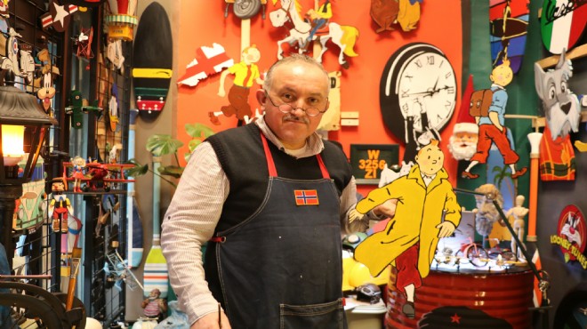 Murat Ülkü (53), 20 yaşında boyacı olarak çalıştığı sırada resme olan yeteneğini fark edip, aldığı eğitimlerle kendisini geliştirdi. 2009 yılında İzmir Büyükşehir Belediyesi Park ve Bahçeler Müdürlüğü'nde boyacı olarak işe giren Ülkü, resim sanatına burada da devam etti. Park, bahçe ve anaokulu duvarlara resimler çizip, renk katmaya başladı. 2023 yılında emekli olup, Tarihi Kemeraltı Çarşısı'nda atölye açan Ülkü, burada el emeğiyle ahşap malzemeden çizgi film karakterleri, masal kahramanlarının figürlerini kesip, boyayarak 3 boyutlu resimler, kuklalar ve dekoratif ürünler üretiyor. Murat Ülkü, 'Kemeraltı Çarşısı'nda şu an bu işi el emeği ile yapan tek yeriz. Burası çok küçük bir atölye ama burası masal dünyası, harikalar diyarı gibi bir yere dönüştü. Dışardan bakanlar, şaşırıyor, çok güzel tepkililer alıyorum. Özellikle çocuklar görünce çok mutlu oluyorlar. Onların hayran bakışları, beni mutlu ediyor" dedi.