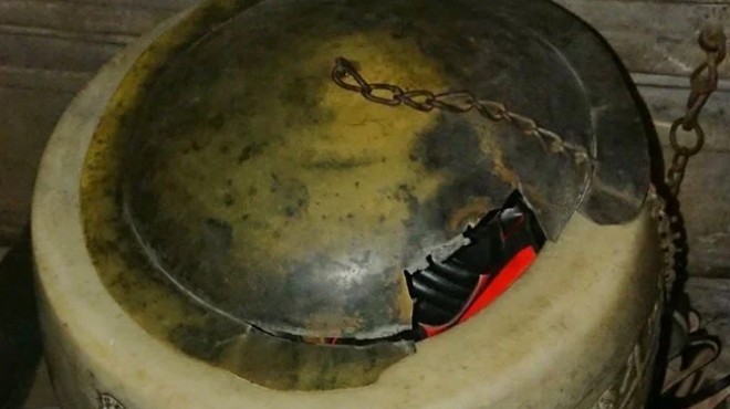 Sosyal medyada paylaşılan fotoğrafta tarihi su haznesinin kapağının kırıldığı ve içine ayakkabı koyulduğu görüldü.