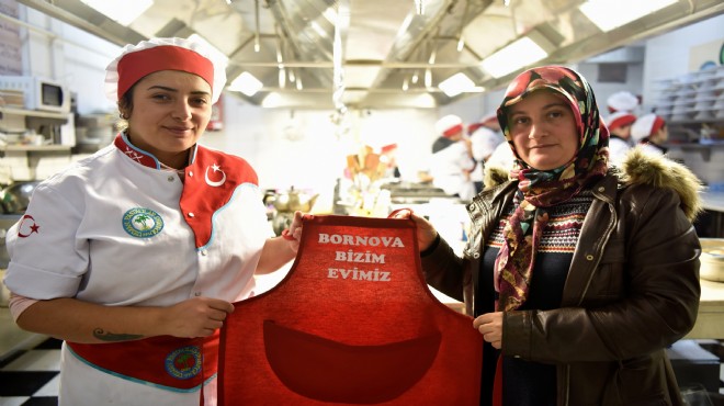Bornova Bizim Evimiz yazılı önlükler, Evka-3’deki Mutfak Atölyesi’nde gerçekleşen kahvaltıda, BORKEM’in ilk dönem kursiyerleri tarafından hediye edildi.