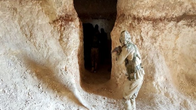 Bafliun dağında teröristlerin kullandığı mağara görüntülendi. mağara içinde soba, sünger, yastık, odunlar, kum torbaları bulundu.