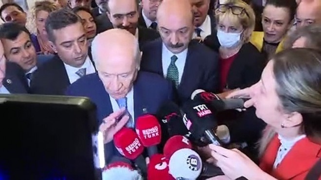 Bahçeli mikrofonları itti ve Yazıcoğlu'na "Hadi işine bak, hadi işine bak" diyerek tepki gösterdi. (Cumhuriyet)
