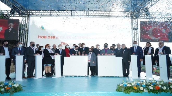 Bakan Mahmut Özer, İzmir'in Menderes ilçesinde bulunan Tekeli Organize Sanayi Bölgesi'ndeki (İTOB) "Mesleki ve Teknik Anadolu Lisesi ve MESEM Temel Atma Töreni"ne katıldı.