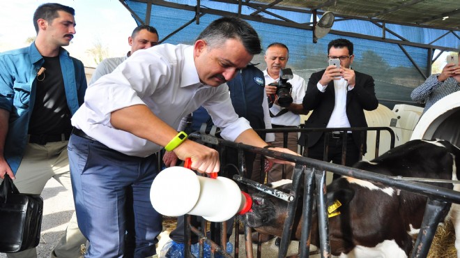 1500 büyükbaşın bulunduğu merkezi gezen Pakdemirli, burada bir buzağıyı da elleri ile besledi. 4 aylık buzağıya süt veren Pakdemirli, hayvanın başını da okşadı.