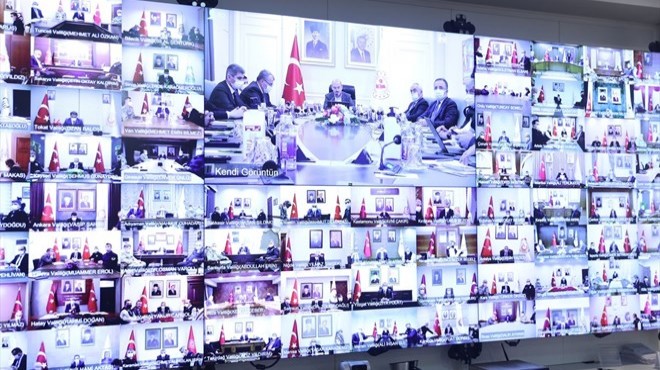 İçişleri Bakanı Süleyman Soylu'nun 81 ilin valisiyle yaptığı toplantıda, yeni tip corona virüs (Covid-19) ile mücadele çerçevesinde, şehirlerdeki mevcut durum, hafta içi ve hafta sonu uygulanan sokağa çıkma kısıtlamaları, alınan yeni tedbirler ve vatandaşların yoğun olarak bulunduğu cadde ve sokaklardaki denetimler değerlendirildi.